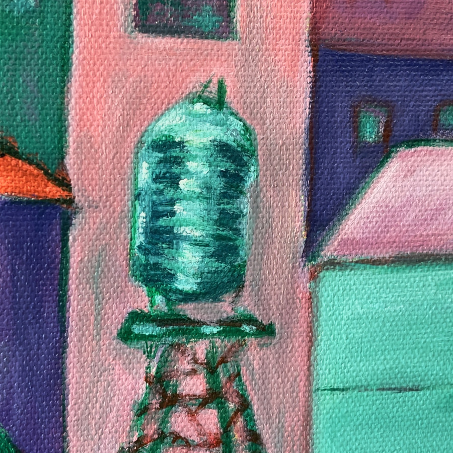 夕陽把我的家鄉染成了粉橘色,看起來也相當地錯落有致。這是我每天都會路過見到的風景,儘管平凡無奇,但對我來說這也代表離家更近了。新舊建築在此紛陳,交織出家鄉特有的輪廓。曾幾何時還只是一片荒煙蔓草,也是兒時和玩伴最喜愛的探險區──鑽進草叢尋找金龜子、大螳螂……長大後沙漠、草叢都不見了,昆蟲們也消失了,取而代之的是一棟棟的公寓大廈。我懷念過去那片荒蕪的沙漠蔓草,也喜歡現在的建物景緻,因為這一切都是我摯愛的家鄉風景。