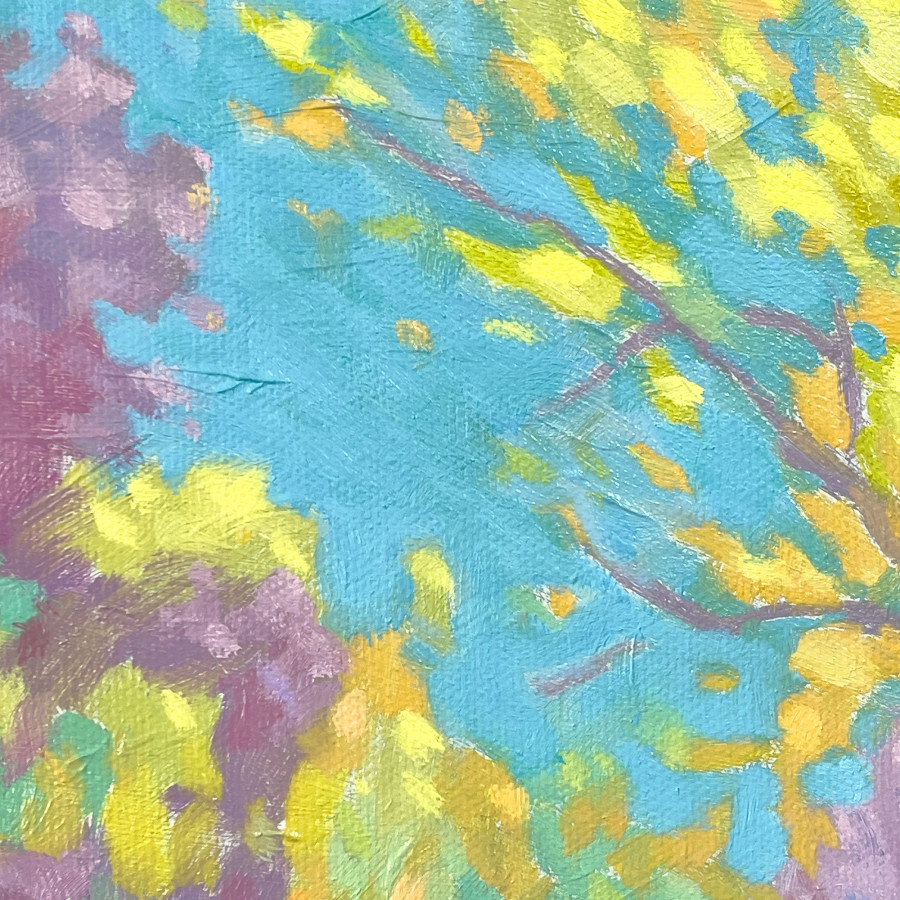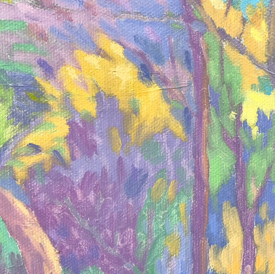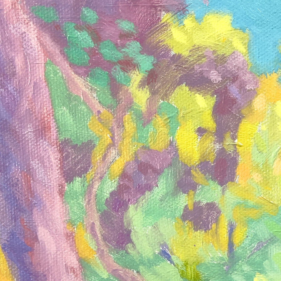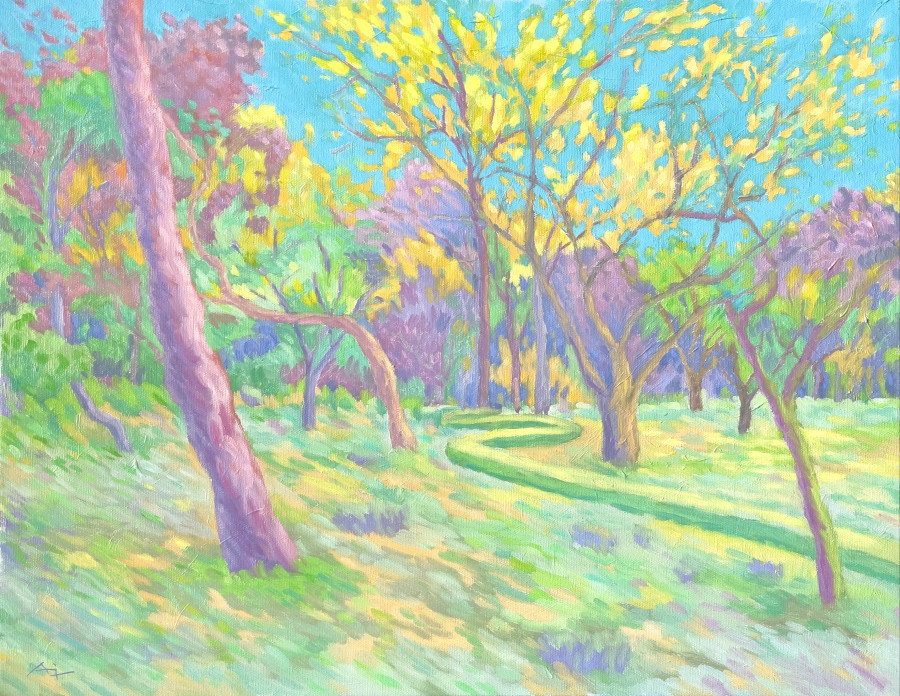 這件作品透過降低了明暗對比並採取較為明亮的用色方式,表達對多年前曾到日本新宿御苑遊歷的懷念——在我的記憶中,那美麗的景緻、精心設計維護的公園,雖已不似當初那般歷歷在目,但旅行之中的種種驚喜和喜悅依舊縈繞我心,期待與這美景的再次相遇。